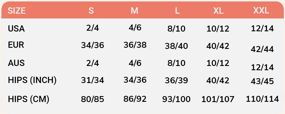 Choose the correct size according to your pant size. Grab your measuring tape and wrap it around your body over your hips, where the bikini bottom will sit. Do this standing up as straight as possible. If you are between sizes – Please size up.